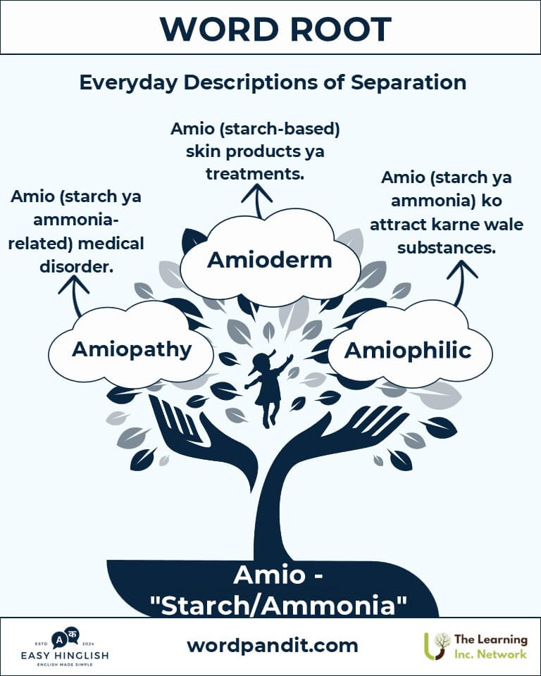 Kya "amigo," "amiable," aur "amity" mein kuch common hai? Yeh words love, friendship, aur harmony ko reflect karte hain, jo Latin "amicus" (friend) aur Old French "ami" (beloved) se derive hote hain. Pronounced "ah-mee" ya "ah-mik," yeh root duniya bhar ke languages mein dosti aur insani sambandhon ka celebration karta hai.