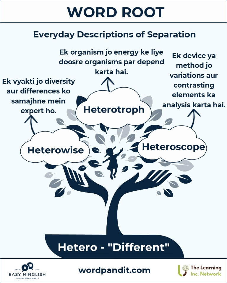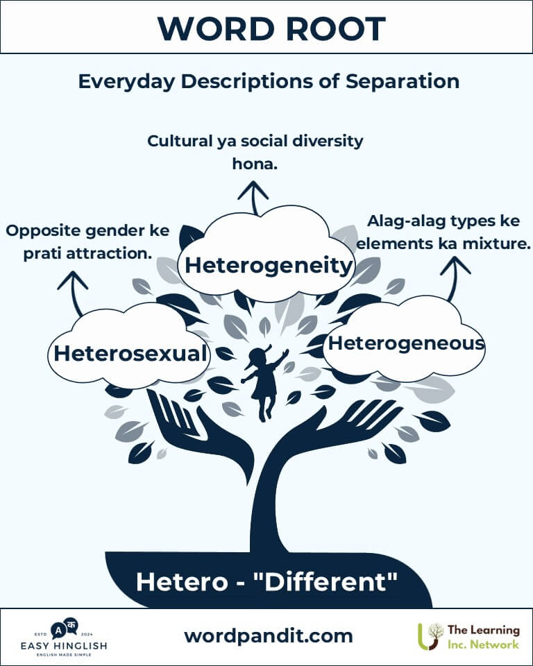 (Greek word "heteros" ka matlab hota hai "alag" ya "doosra". Yeh root humein batata hai ki vividhata aur contrast kaise bhasha aur samajh mein important hote hain.)