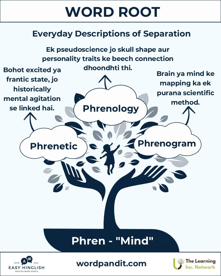 "Phren" root humare thought aur emotions ke interconnectedness ko explore karne ka ek pratik hai. Yeh root historical aur scientific discussions mein central raha hai, chahe wo phrenology ka pseudoscience ho ya schizophrenia ke modern treatments.