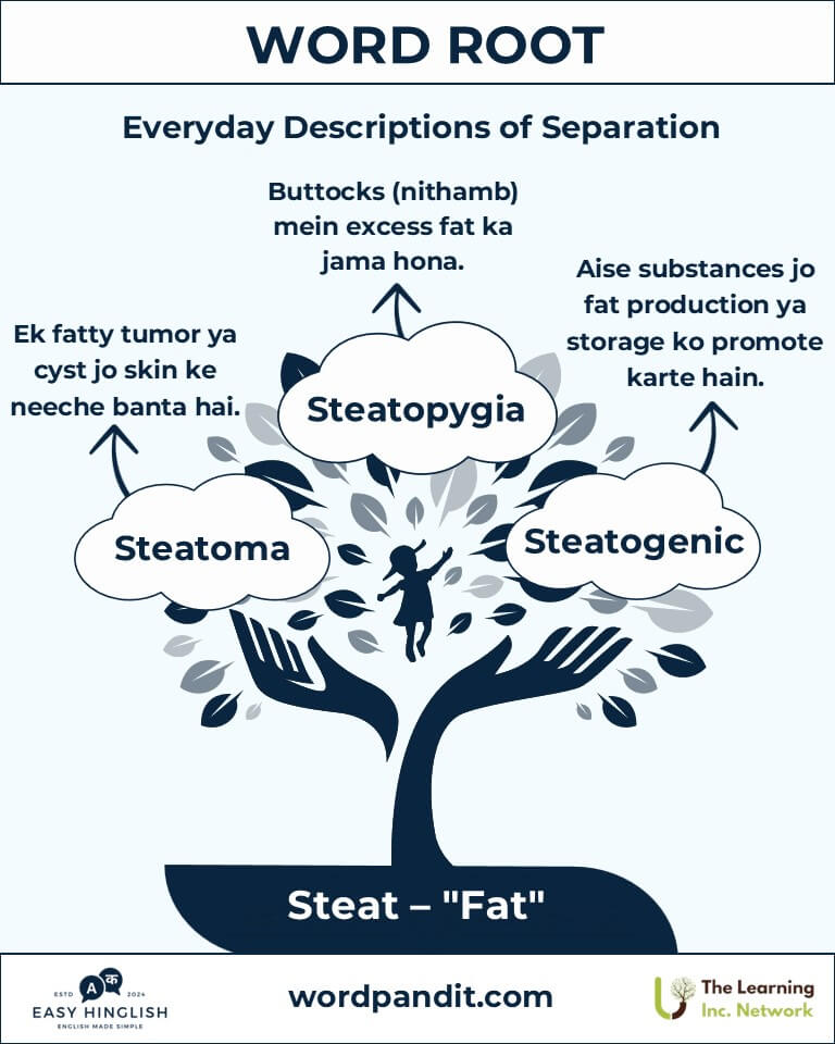• Scientific Importance: Greek origins se lekar modern medical contexts tak, "steat" root ne humein fat ke complex aur vital role ko samajhne ka ek naya nazariya diya hai।