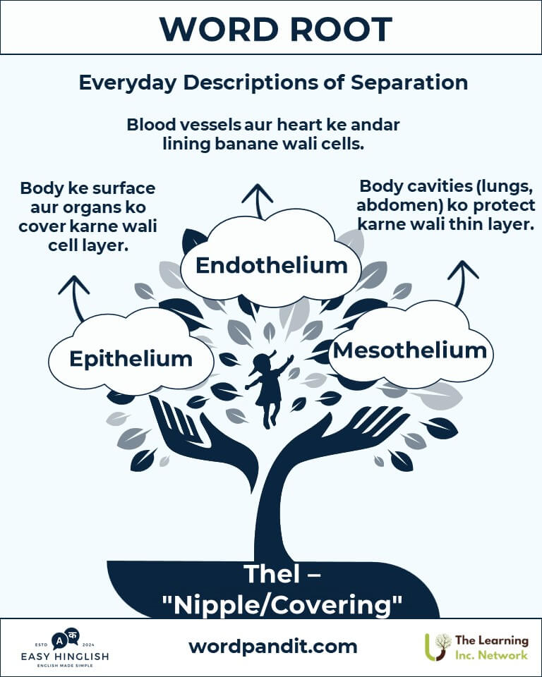 A: Medical terms jaise epithelium aur mesothelium mein "thel" ka use hota hai. Yeh layers of cells ko describe karta hai jo: